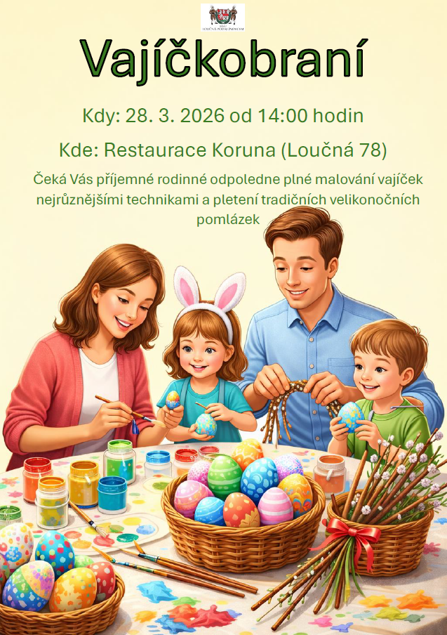 Dne 28. 3. 2026 od 14:00 proběhne v restauraci Koruna (Loučná) naše tradiční vajíčkobraní. Přijďte strávit příjemné kreativní odpoledne! :)